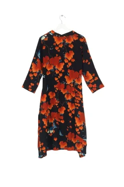This 3/4 Length Dress Is Cut To Hang Asymmetrically, Has A Delicately Detailed Collar And Two Handy Pockets, One On The Front And Another Hidden Within The Side Seam.