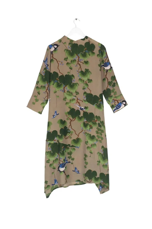 This 3/4 Length Dress Is Cut To Hang Asymmetrically, Has A Delicately Detailed Collar And Two Handy Pockets, One On The Front And Another Hidden Within The Side Seam.
